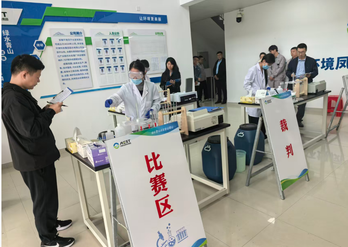 2025年10月17日,由安徽省生態(tài)環(huán)境產(chǎn)業(yè)集團(tuán)有限公司主辦、安徽環(huán)境科技集團(tuán)承辦的“2025年污水化驗(yàn)技能競(jìng)賽”在鳳陽(yáng)寧國(guó)現(xiàn)代產(chǎn)業(yè)園污水處理廠(chǎng)成功舉辦。本次競(jìng)賽以“水質(zhì)氨氮測(cè)定(納氏試劑分光光度法)”為核心內(nèi)容,通過(guò)模擬實(shí)操全面檢驗(yàn)化驗(yàn)人員的專(zhuān)業(yè)技能、規(guī)范意識(shí)和數(shù)據(jù)處理能力,是集團(tuán)公司加強(qiáng)產(chǎn)業(yè)工人隊(duì)伍建設(shè)、提升一線(xiàn)人才素質(zhì)的重要實(shí)踐。集團(tuán)公司黨委副書(shū)記、職工董事、工會(huì)主席張小忠出席活動(dòng)并致辭。